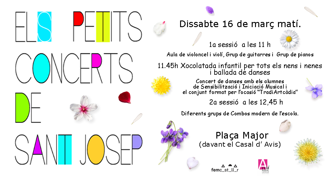 4a edició “ELS PETITS CONCERTS DE SANT JOSEP” Publicat perArtcàdia13/03/2019Publicat enArtcàdia Comparteix això: Feu clic per compartir a X (S'obre en una nova finestra) X Feu clic per compartir al Facebook (S'obre en una nova finestra) Facebook M'agrada S'està carregant... Relacionats