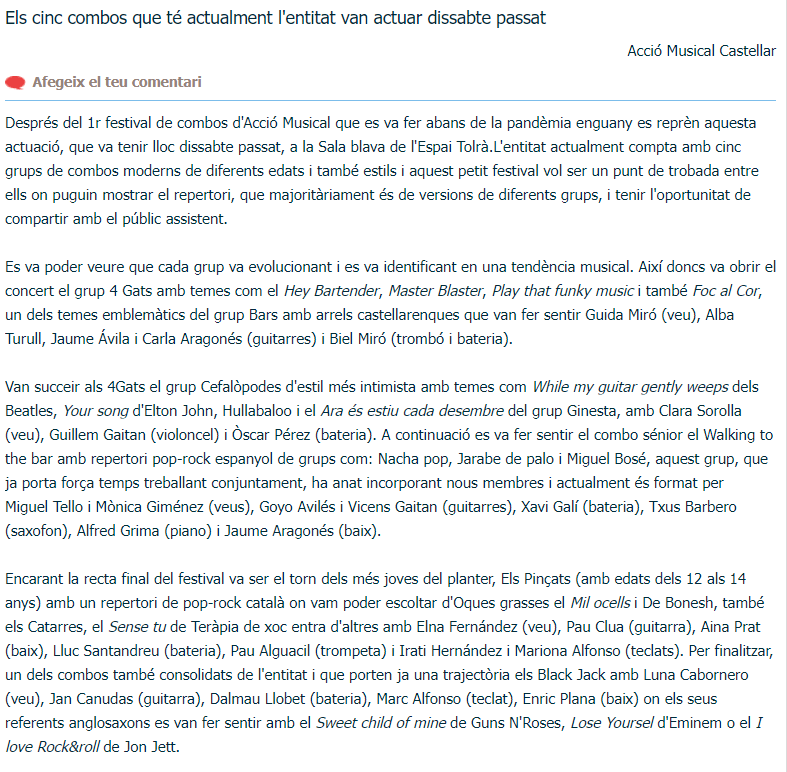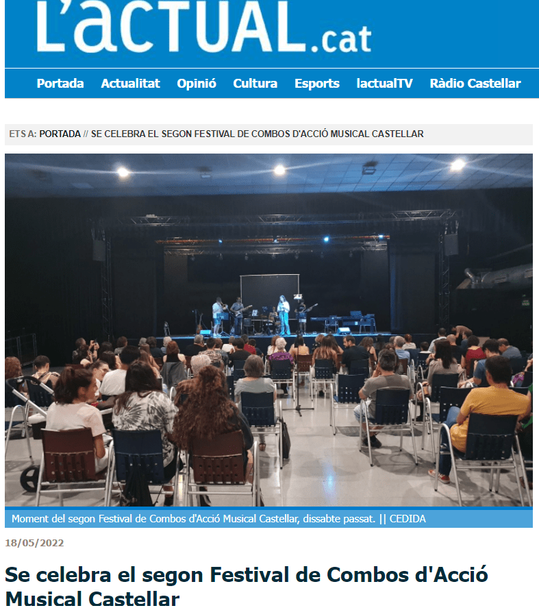 2n FESTIVAL DE COMBOS Publicat perArtcàdia18/05/2022Publicat enArtcàdia Comparteix això: Feu clic per compartir a X (S'obre en una nova finestra) X Feu clic per compartir al Facebook (S'obre en una nova finestra) Facebook M'agrada S'està carregant... Relacionats