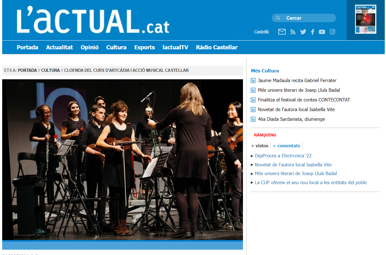 2n CONCERT: Secció “De Cambra Amateur” concert a càrrec d’ alumnes de l’ Artcàdia d’entre 15 a 20 anys. Aquests alumnes prèviament rebran una masterclass durant 2 dies amb Joan Ramon Company. Concert 27 de març a les 18.30h a l’Auditori municipal.