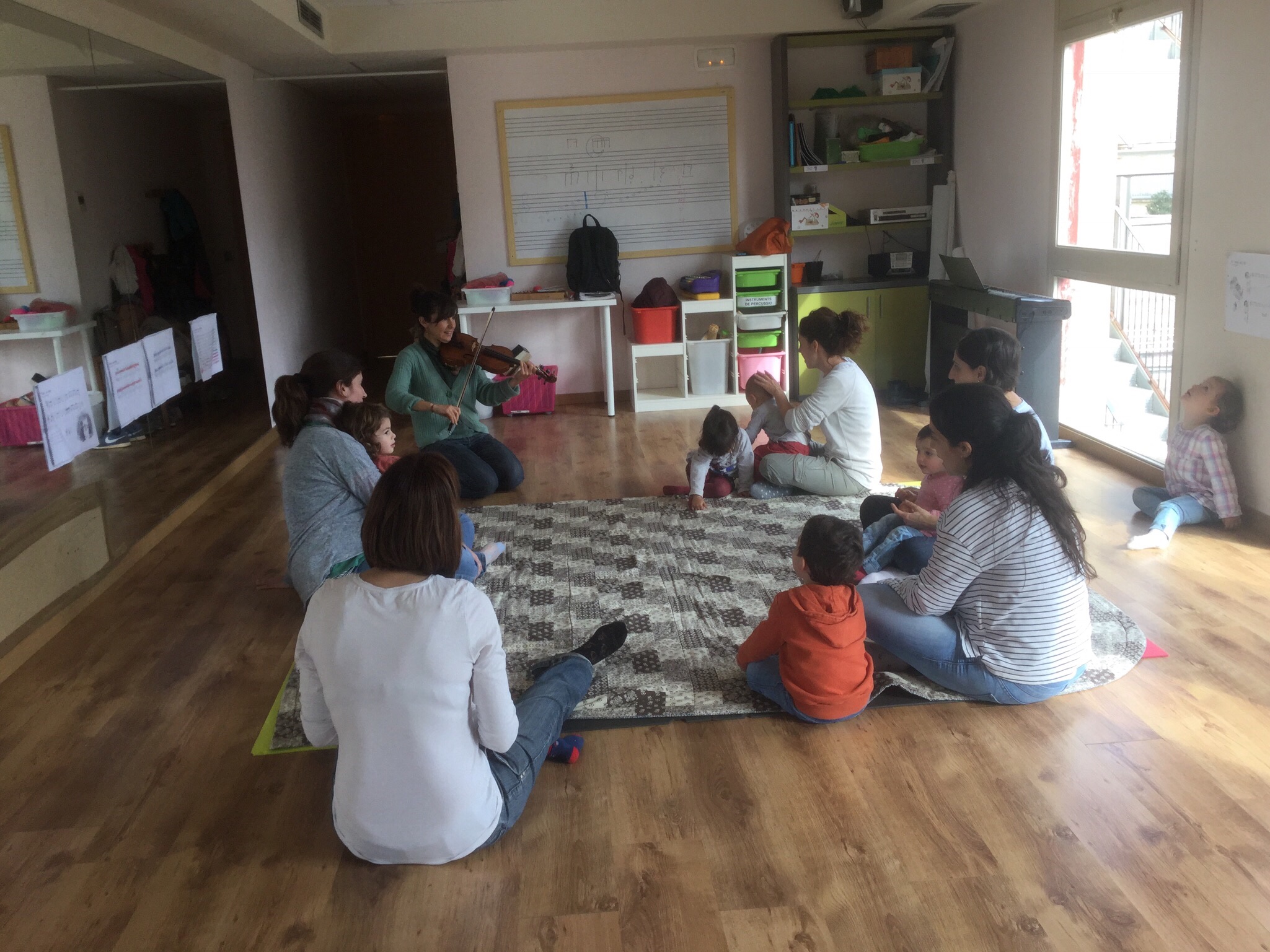 A) Bim Bom: Sessions regulars setmanals per gaudir amb els més petits inspirades en el programa “Suzuki early childhood” on desenvolupem les habilitats musicals i les seves capacitats cognitives i efectives a partir de les activitats proposades.